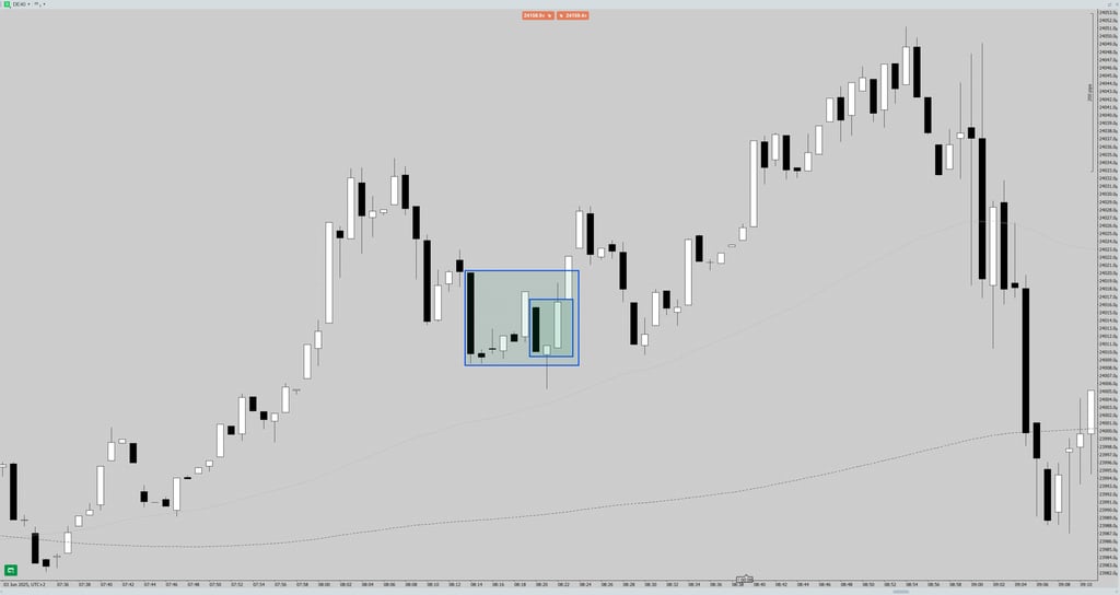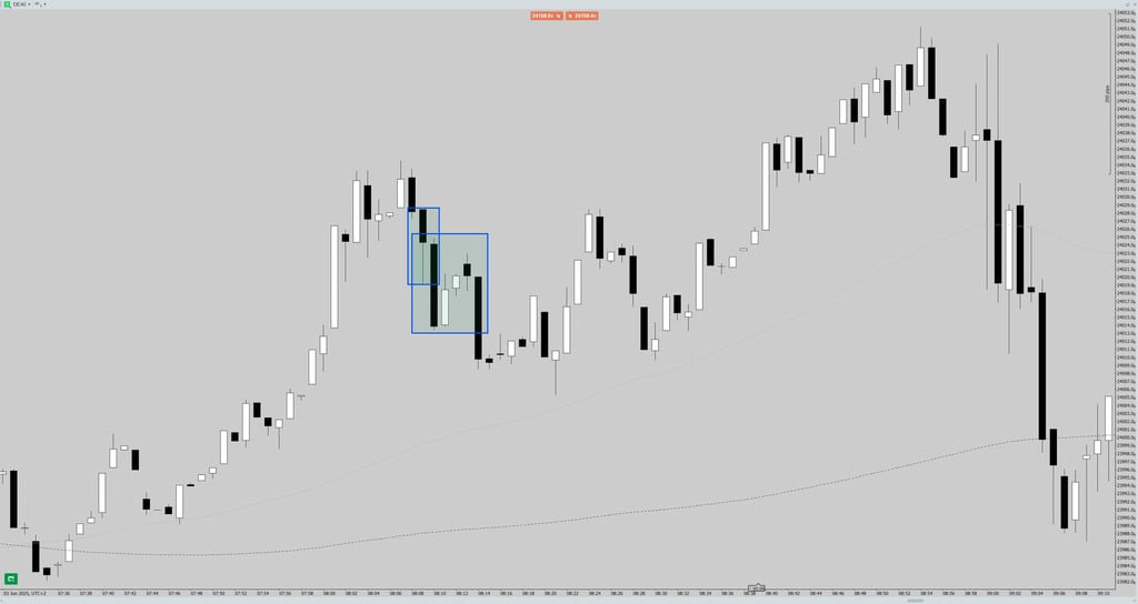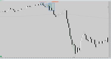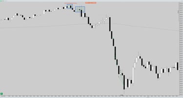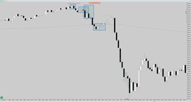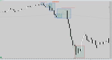 To czego się dzisiaj jeszcze nauczyłem wymaga opisania poniżej. Bo analizując cenę i oglądając jak to robią inni zauważyłem u siebie pewne błędy, które mogą rzutować na cały mój trading. Główne zmiany dotyczą czytania cen. Do tej pory traktowałem cenę z interwału m1 jako zbiór świec. Pewien ciąg znaków tworzących strukturę. Tymczasem zmienia się nieco perspektywa w momencie, gdy zaczynam czytać kolejno jedna po drugiej świecy. Na przykładzie tego co widać poniżej Opiszę swój tok myślenia w wersji 2.0 czyli zaktualizowanej.