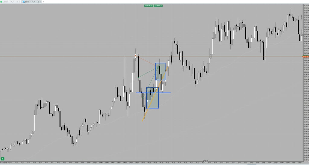 Po wybiciu, widać jak cena daje szanse na lepsze wejścia w pozycję. W końcu wybija i przez kolejnych kilka minut nie daje szans na wyjście z pozycji. Nawet w tym momencie