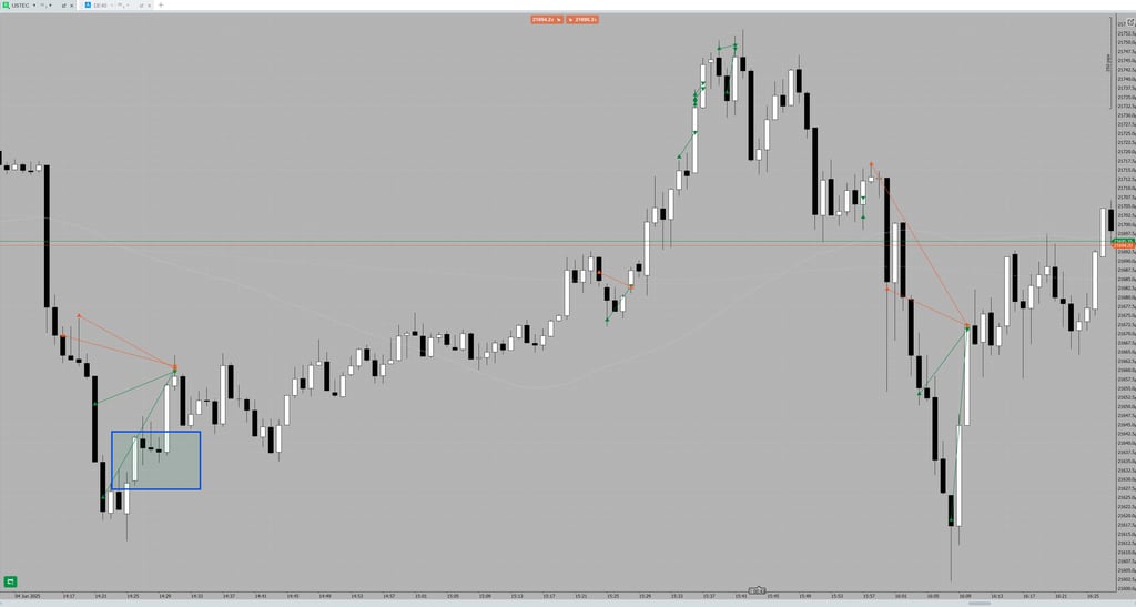 Powinienem otworzyć longa, po przebiciu mojej strefy i trzymać go przynajmniej do poziomu, gdzie zamknąłem wszystkie zlecenia. Bo taką ilością czasu dysponowałem w danym momencie. Jak by się to rozegrało?