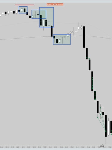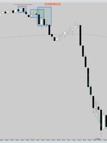 No dobra ale to po co to wszystko. Wydaje mi się, że mam swój scenariusz ... Na podstawie obserwowania świecy po świecy, widzę, kiedy która ze stron ma coś do powiedzenia. Zatem w całym tym moim postępowaniu. Nie muszę czekać na to, czy rozgrywam wybicie, czy rozgrywam ruch po korekcie. Obserwuję cenę czytam świece i reaguję. Tylko, że te reakcje muszą być szybkie. Świeca ma 60 sekund. W tym czasie muszę wejść w zlecenie i analizować następną świecę i kolejną. Pracować cały czas sl-em. Trzymać palec na spuście, być w gotowości do ewakuacji z takich pozycji. Pewnie komfort pracy byłby lepszy na większym interwale. Ja lubię pod górkę. Jak takie czytanie ceny ma się do tej transakcji z wczoraj i otwierania takiej pozycji: