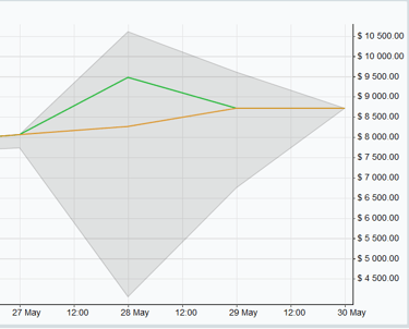 jak głupie decyzje sprawiają, że zmienia się saldo rachunku. Wahania rachunku widać na szarym polu.